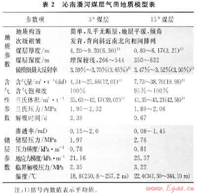 1) 沁南潘河煤層氣田地質(zhì)構(gòu)造簡單,次級褶皺構(gòu)造發(fā)育。3#煤層厚度大(6.5m左右),結(jié)構(gòu)簡單,分布穩(wěn)定;15#煤層較穩(wěn)定,厚度為薄-中等。煤變質(zhì)程度高,屬于無煙煤;煤層含氣性良好,含氣量較高,但平面上變化較大,氣體質(zhì)量好,甲烷含量超過98%;含氣飽和度高,介于95%~100%;滲透率相對較好,儲層壓力較高??傮w上,地質(zhì)和儲層特征參數(shù)有利于煤層氣富集和高產(chǎn)。