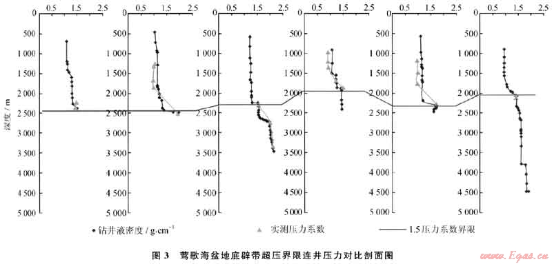 1) 鉆井安全是高溫超壓盆地鉆井過程中的重要因素,鉆前壓力預測是鉆井井身結構設計的基礎。經(jīng)過多年的勘探實踐,總結出“速度差法”是鶯歌海盆地的鉆前壓力預測和鉆后壓力計算中一種適用的方法,并建立了相應的計算數(shù)學模型,準確性高。