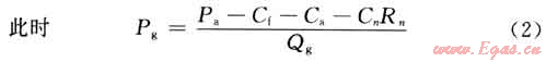 從另一方面看,該單位產(chǎn)品所用天然氣產(chǎn)生的使用經(jīng)濟(jì)價值應(yīng)為單位天然氣用于該用途的使用經(jīng)濟(jì)價值與生產(chǎn)該單位產(chǎn)品所消耗天然氣量的乘積(PgQg),它們的數(shù)值應(yīng)相等: