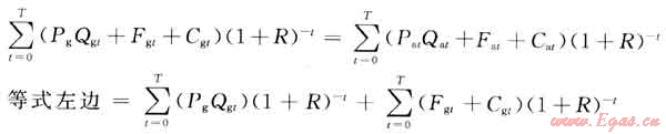 根據(jù)“替代價值法”的原理,在達(dá)到相同使用效果前提下,在天然氣使用裝置經(jīng)濟(jì)壽命期內(nèi)付出的累計(jì)投入現(xiàn)值應(yīng)等于使用天然氣等價替代物的裝置經(jīng)濟(jì)壽命期內(nèi)付出的累計(jì)投入現(xiàn)值,即: