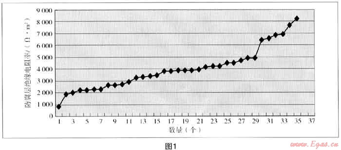 35個(gè)測(cè)點(diǎn)的防腐層電阻率從826Ω·m2~8218Ω·m2,管道的外防腐層電阻璋弓啷分在3000Ω·m2~5000Ω·m2,平均值為3996Ω·m2,說明管道防腐層等級(jí)基本上為“差”。