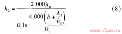 對(duì)于直埋蒸汽管道,h2的計(jì)算式為[7~10]:
