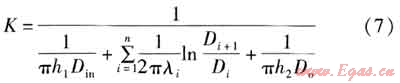 計(jì)算管段傳熱系數(shù)K的計(jì)算式為:
