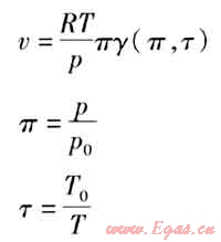 在區(qū)域1中,γ(π,τ)以折算壓力π和折算溫度τ為獨(dú)立變量。比體積與基本方程之間的關(guān)系表達(dá)式為: