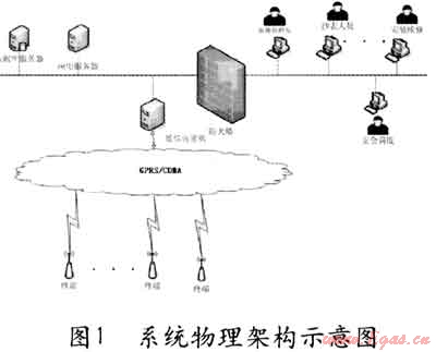 根據(jù)公司對網(wǎng)絡安全的特殊要求,采用GPRS/CDMA專線,實現(xiàn)采集終端和服務器平臺之間采用端到端加密,避免信息在整個傳輸過程中出現(xiàn)泄漏的可能,兩者通過防火墻進行隔離,并在防火墻上進行IP地址和端口過濾。