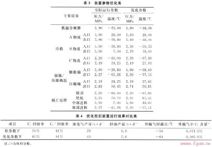 3) 大澇壩凝析氣處理裝置的冷箱、脫乙烷塔等主要設(shè)備能夠滿(mǎn)足優(yōu)化需要,無(wú)需對(duì)現(xiàn)有裝置作重大改造,對(duì)現(xiàn)有裝置的參數(shù)優(yōu)化切實(shí)可行。