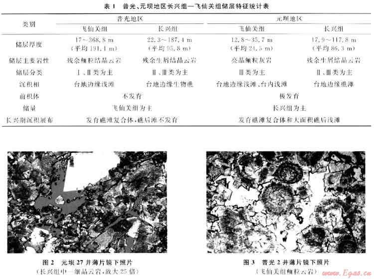 總起來看,普光地區(qū)儲層主要發(fā)育飛仙關(guān)組,具有厚度大、物性好的特點(diǎn);元壩地區(qū)儲層主要發(fā)育長興組,具有面積大、礁后灘發(fā)育的特點(diǎn)。