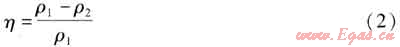 式中ρ1、ρ2——旋風(fēng)分離器進(jìn)口和出口管道的粉塵質(zhì)量濃度,g/m3