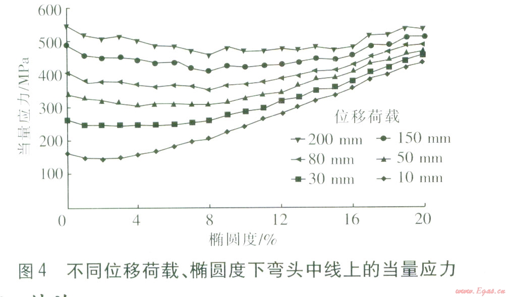 彎頭具有一定的橢圓度可以降低彎頭應(yīng)力,橢圓度控制在8%是合理的,若嚴(yán)格限制在6%以下,既增大成本又提高了彎頭的應(yīng)力。
