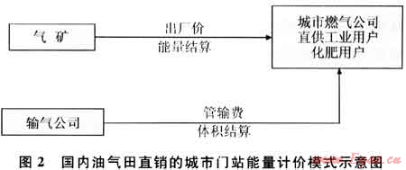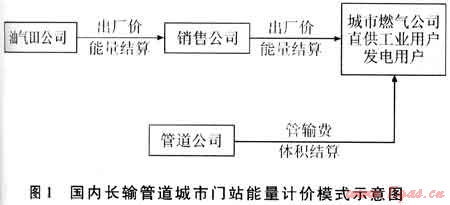 由于目前天然氣銷售是按照出廠價和管輸費分別結(jié)算的,實施能量計量后,按圖1、2的模式確定城市門站價格。