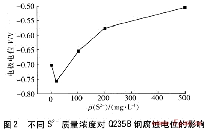 圖2為不同S2-質(zhì)量濃度對(duì)Q235B鋼腐蝕電位的影響。