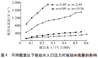 ② 相同凝結(jié)水入口壓力下,不同截面比的引射混合式低壓加熱器引射蒸汽量不同。截面比小的,工作噴嘴出口直徑大,凝結(jié)水流量也大,產(chǎn)生的負(fù)壓及引射蒸汽量也大。