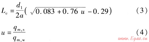 擴(kuò)散室的擴(kuò)展角一般取6°~15°,擴(kuò)散室長(zhǎng)度Le的計(jì)算式為: