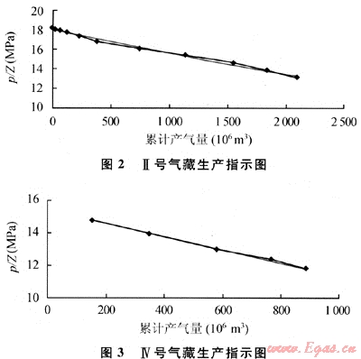 按照同樣的方法,可以計(jì)算Ⅱ氣藏的動(dòng)態(tài)儲(chǔ)量約為40.8×108m3,計(jì)算結(jié)果與用壓降法計(jì)算的動(dòng)態(tài)儲(chǔ)量相吻合。