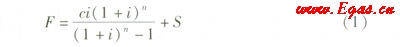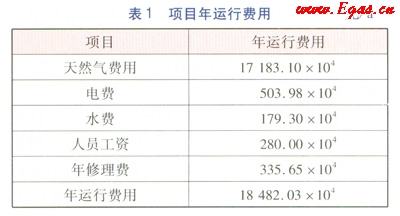 天然氣是一種清潔、優(yōu)質(zhì)、使用方便的能源。與燃煤鍋爐房相比,燃?xì)忮仩t房可省去脫硫、除塵、上煤、除渣等設(shè)備,無需煤、渣堆場(chǎng),節(jié)省用地,運(yùn)行管理較簡(jiǎn)單。該項(xiàng)目供熱面積為612×104m2,鍋爐熱效率取0.95,天然氣的低熱值為35.16MJ/m3,天然氣額定耗量為36400m3/h。天然氣價(jià)格按1.65元/m3計(jì)算,電價(jià)按0.59元/(kW·h)計(jì)算,水價(jià)按5.5元/t計(jì)算,人員工資按4×104元(人·a)計(jì)算,年維修費(fèi)按設(shè)備造價(jià)的1.8%計(jì)算。項(xiàng)目年運(yùn)行費(fèi)用見表1。由表1可知,項(xiàng)目的年運(yùn)行費(fèi)用為18482.03×104元/a。項(xiàng)目造價(jià)為25140.38×104元,使用壽命為20a,年收益率為5%。采用費(fèi)用年值法對(duì)項(xiàng)目進(jìn)行經(jīng)濟(jì)性分析,費(fèi)用年值F的計(jì)算式為: