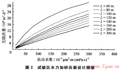 采用節(jié)點模型開展地層流動物性與裂縫長度之間相關(guān)性分析、預測不同裂縫與地層匹配情況下的無阻流量、根據(jù)前期試驗成果及微型注入測試分析,建立了試驗區(qū)壓裂設計圖版(圖2),該圖版與現(xiàn)場試驗結(jié)果具有很好的一致性。