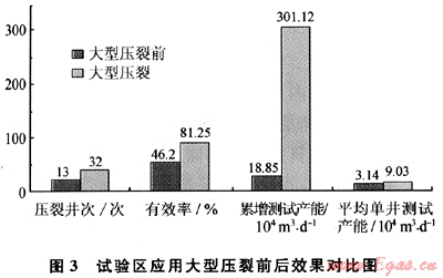 該氣藏通過大型壓裂,獲得了顯著的增產(chǎn)效果及較高的開采效益,圖3是該氣藏應用大型壓裂前后效果對比圖。