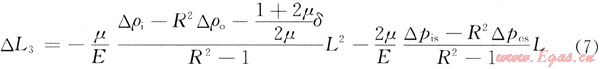 當(dāng)測試管柱內(nèi)流體流動而環(huán)形空間的流體不流動一時,其管柱長度變化△L3為: