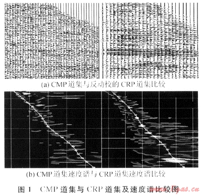 將沿層反演出的疊加速度進(jìn)行傾角校正轉(zhuǎn)換成均方根速度,利用CRP道集反動校的方法進(jìn)行速度優(yōu)化(圖1)。從對比圖中可以看出,由于疊前時間偏移消除了地層傾角和反射點彌散的影響,得到的CRP反映同一反射點的信息,此時時距曲線更接近雙曲線理論假設(shè),分析的均方根速度更準(zhǔn)確、更符合地質(zhì)變化規(guī)律。