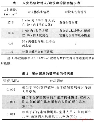 爆炸超壓的破壞影響見表2。