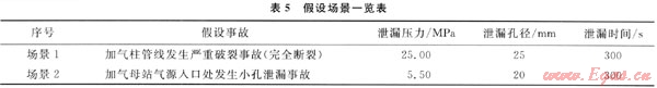 假設(shè)場景1:CNG壓縮機3臺同時運行,此時排:氣量約為2.60kg/s,加氣柱被槽車撞到,發(fā)生嚴重破裂事故,管道完全斷裂。