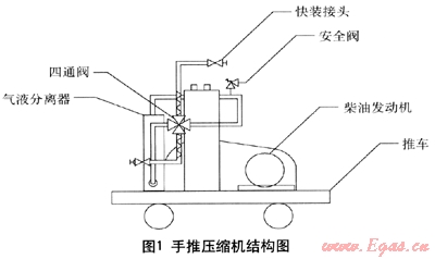 包括壓縮機(jī)、柴油發(fā)動(dòng)機(jī)、氣液分離器、四通閥和快裝接頭。