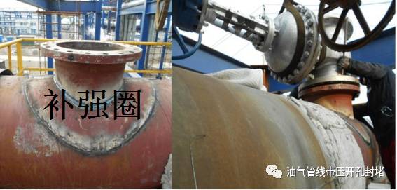 以上兩種施工工藝,根據(jù)主管線的設(shè)計(jì)壓力等級(jí)、開(kāi)孔口徑是否>D/2(D為管道的公稱直徑)可選擇全包開(kāi)孔管件和非全包管件;當(dāng)管線設(shè)計(jì)壓力等級(jí)不超2.5Mpa時(shí),開(kāi)孔口徑>D/2時(shí),也可選用較為經(jīng)濟(jì)的補(bǔ)強(qiáng)圈措施對(duì)母管線進(jìn)行補(bǔ)強(qiáng)處理。