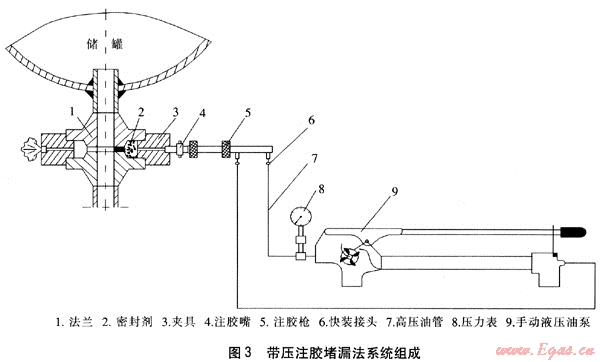帶壓注膠堵漏法系統(tǒng)組成見圖3。