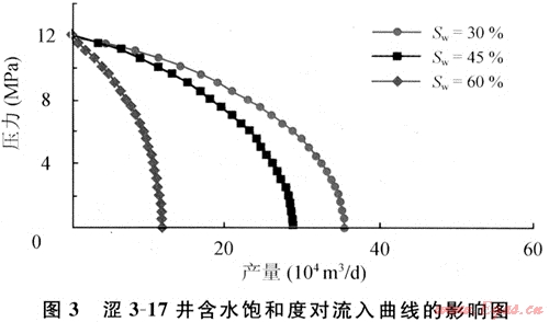 預(yù)測(cè)澀3-17井在不同地層含水飽和度時(shí)的流入曲線如圖3所示。