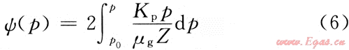 地層滲透率是影響氣井產(chǎn)能的主要因素,對(duì)真實(shí)氣體的擬壓力引入滲透率變形因子(Kp),即