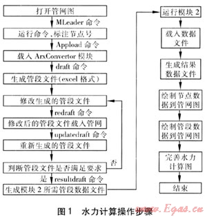 利用GPA軟件進行水力計算,操作人員僅需熟悉AutoCAD與Excel的操作命令即可,簡便易懂。利用GPA軟件進行水力計算的詳細操作步驟見圖1。