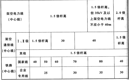 表4.3.6 可燃、助燃?xì)怏w儲罐與鐵路、道路的防火間距(m)
