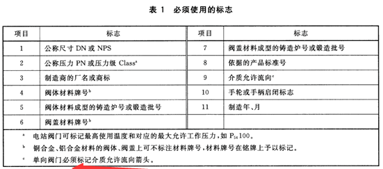 公稱尺寸不小于DN32的閥門必須使用的標(biāo)志見表1。