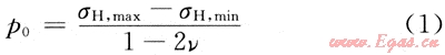 此外,Nolte和Smith研究認(rèn)為具有微裂縫的儲(chǔ)層壓裂時(shí),當(dāng)縫內(nèi)凈壓力超過天然微裂縫的張開的臨界壓力(p0)時(shí)可以實(shí)現(xiàn)天然微裂縫的開啟,p0公式為:[1~4]: