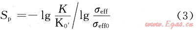 從前面的分析得知低滲透儲層巖石在覆壓實驗中發(fā)生的不是理想線彈性變形,因而按指數(shù)式擬合實驗數(shù)據(jù)相關(guān)性不是最佳。為了能更好地利用實驗數(shù)據(jù),并將其與油氣藏工程相結(jié)合,筆者提出一種新的應力敏感評價指標表征低滲透巖樣滲透率與有效覆壓的關(guān)系[10~11]:
