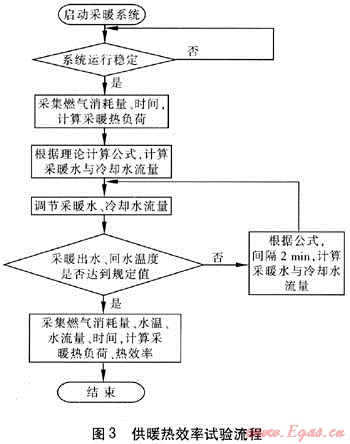 為了進(jìn)一步說明系統(tǒng)軟件設(shè)計(jì)過程,下面以供暖性能試驗(yàn)中的供暖熱效率試驗(yàn)為例加以詳細(xì)闡述。該試驗(yàn)過程需要采集的數(shù)據(jù)有供暖出水溫度、供暖回水溫度、供暖水流量、燃?xì)庀牧?、時(shí)間等,要控制冷卻水流量、供暖水流量。試驗(yàn)控制流程見圖3。