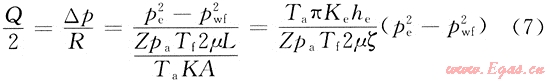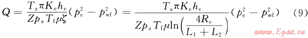 式中:Ta為標準狀況下的溫度,℃;Tf為氣藏條件下的溫度,℃;Ke為儲層滲透率,10-3μm2;he為儲層有效厚度,m;Re為供氣半徑,m;pa為標準狀況下的壓力,MPa;pe為儲層靜壓,MPa;pwf為井底流壓,MPa;Z為氣體在氣藏條件下的壓縮因子,無因次;μ為氣體在氣藏條件下的黏度,mPa·s。