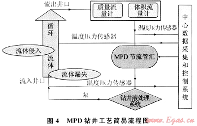 MFC鉆井是通過監(jiān)測微進口流量或出口流量,來實現(xiàn)監(jiān)測鉆井液總流量的微小波動范圍,也是一種精確確定孔隙壓力與破裂壓力的鉆井方法。探測到小的流失與侵入,然后通過一定的方法來調(diào)整返回流量(通過回壓泵與節(jié)流閥的共同作用或只調(diào)節(jié)節(jié)流閥來實現(xiàn)),結(jié)果使井底壓力平衡地層壓力。