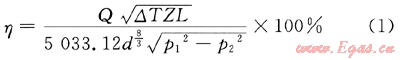 可以通過管輸效率估算積液量,由輸氣管道的實(shí)際運(yùn)行參數(shù)(溫度、壓力等)利用水力計(jì)算方法可以計(jì)算管道的理論輸量,再將此輸量與管道的實(shí)際輸量進(jìn)行比較就可以得到管道的輸氣效率[2~4]。輸氣效率計(jì)算公式如下: