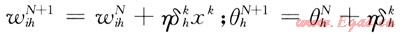 6) 使用輸出層各節(jié)點的δok和隱含層各節(jié)點的輸出向量hok來修正連接權(quán)值who和閾值θo: