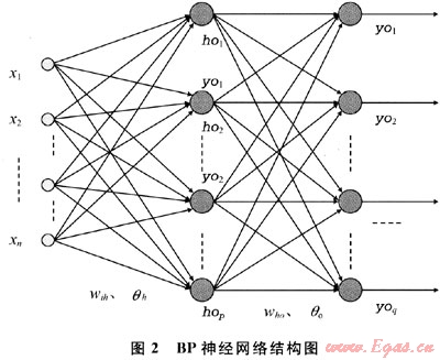 以圖2所示3層神經(jīng)網(wǎng)絡(luò)結(jié)構(gòu)為算法構(gòu)建依據(jù),按照如下步驟[7~8]進行計算,實現(xiàn)網(wǎng)絡(luò)的建立: