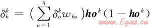 4) 輸出層輸出向量yok與期望輸出向量dk結(jié)合,計算誤差函數(shù)對輸出層的各節(jié)點的偏導(dǎo)數(shù)δok: