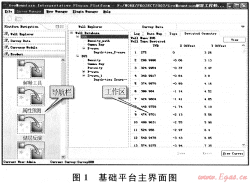當前,地震解釋軟件種類較多,國外的有大型地震綜合解釋LandMark軟件系統(tǒng)、微機一體化油藏描述的Discovery軟件系統(tǒng),地震微機解釋軟件包SMT,斯倫貝謝公司的勘探開發(fā)一體化軟件包Geoframe系統(tǒng),OpendTect軟件系統(tǒng)。國內(nèi)有處理解釋一體化的GeoEast軟件系統(tǒng)[1],雙狐微機解釋系統(tǒng)等。LandMark軟件主要有OpenWorks軟件平臺和各個應用程序組成,應用程序都是OpenWorks的插件,均運行于OpenWorks環(huán)境下,受它管理,遵循其設置的規(guī)則和標準,所有應用程序產(chǎn)生的各類數(shù)據(jù)包括地質(zhì)、地震、測井、人文4大類數(shù)據(jù),均存儲于OpenWorks數(shù)據(jù)庫中,形成了一個統(tǒng)一的數(shù)據(jù)體。盡管如此,在插件的管理方面,開發(fā)人員仍不能方便地進行插件安裝和卸載。而OpendTect軟件具有很好的插件機制,主要由基礎環(huán)境以及在此基礎上運用高級插件技術(shù)(Plugin)開發(fā)的功能模塊組成,但在數(shù)據(jù)平臺方面又有所欠缺。.結(jié)合四川山地物探的研發(fā)模式,探索一套基礎平臺加功能插件的軟件架構(gòu)設計,使該解釋平臺(即GeoMountoin軟件系統(tǒng))較好地解決軟件開發(fā)與集成,使之具有很好的擴展性。
