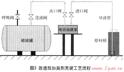 改進(jìn)后加臭劑充裝工藝流程見圖3。