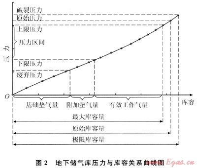 地下儲(chǔ)氣庫(kù)壓力與庫(kù)容關(guān)系見圖2。