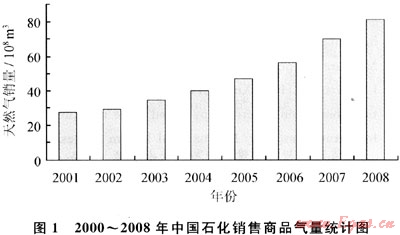 2000年以來,中國(guó)石油化工股份有限公司(以下簡(jiǎn)稱中國(guó)石化)氣田勘探不斷獲得重大突破,階段探明儲(chǔ)量高速增長(zhǎng),氣層氣產(chǎn)量以年均10%以上的速度快速增長(zhǎng),2008年天然氣產(chǎn)量達(dá)到83×108m3。天然氣市場(chǎng)規(guī)模迅速擴(kuò)大,2008年中國(guó)石化銷售商品氣70.5×108m3,2009年商品氣量突破71×108m3,約占全國(guó)天然氣總消費(fèi)量的9%。