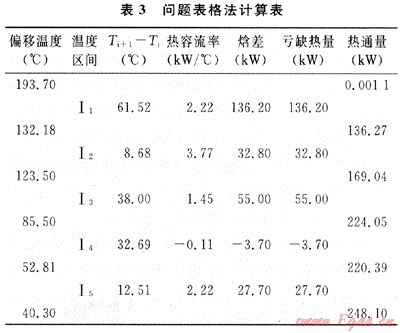 表3為應(yīng)用問(wèn)題表格法計(jì)算換熱網(wǎng)絡(luò)所需公用工程量和夾點(diǎn)位置。換熱網(wǎng)絡(luò)的夾點(diǎn)位于193.70℃,加熱量為0kW,冷卻量為248.10kW。