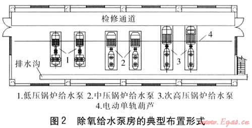 Key words:deaerating feed water;layout of device;design of pump house;crane