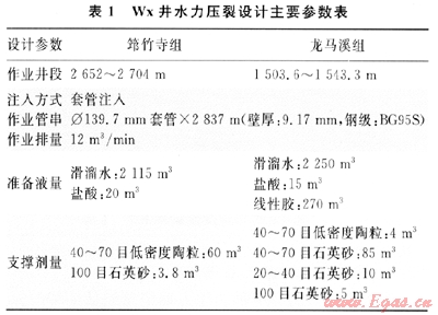 Wx井壓裂設(shè)計參數(shù)如表1所示。