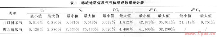 通過對韓城地區(qū)煤層氣演化過程分析,該區(qū)煤層熱演化程度較高,煤層氣主要以熱成因氣為主,盡管在后期改造作用中研究區(qū)的東部煤層出露于地表,可能遭受大氣降水等因素的影響,但煤層氣碳同位素值(通常把δ13C1<-55‰認(rèn)為是生物成因氣)的特征表明并沒有生物氣的混入。